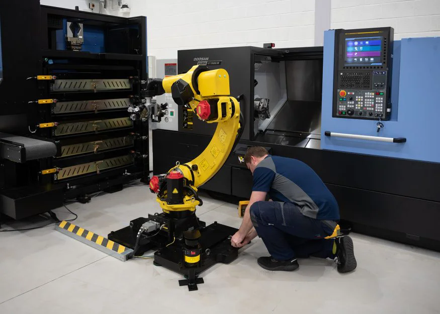 An automation system from Mills CNC can range from Doosan Collaborative Robots, to help improve production cycles, through to a bespoke integration of CNC robotics and industrial robots with sensors, controls, and actuators.