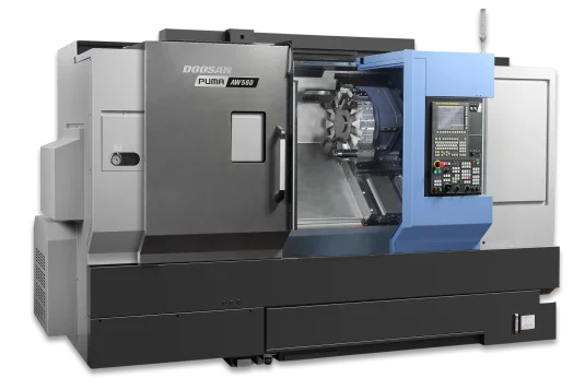 - Doosan VAW series – feature a high-torque 55kW/2000rpm spindle, and a high-productivity twin turret configuration (6 station + 6 station)