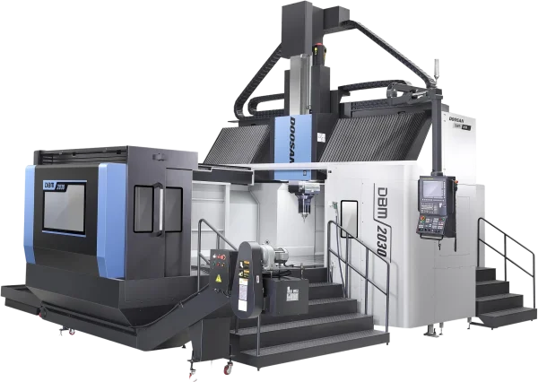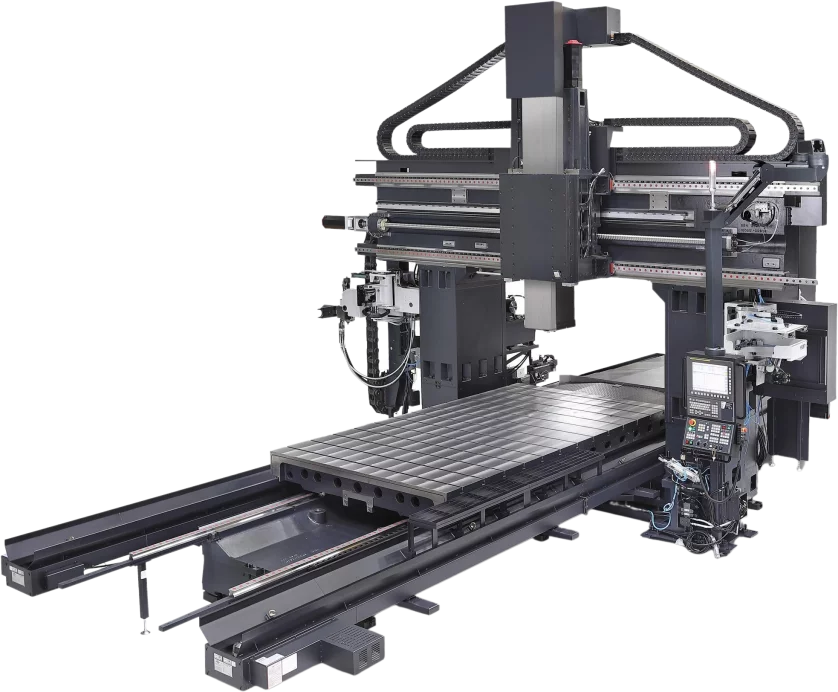 This strong, stable machine is ideal for oversized die mold applications, and has an auto attachment changer making it incredibly versatile. This heavy duty bridge mill includes a 50 taper, 8,000 RPM RAM spindle with a built in motor that outputs 55 kW and 1,009 Nm of torque at just 350 RPM.