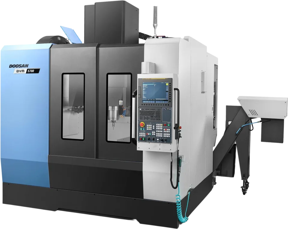 The BVM series includes the Doosan BVM 5700, a rigidly designed and built bridge-style vertical machining center that, with its integrated thermal compensation systems and powerful built-in spindle, delivers high accuracies, superior surface finishes and best-in-class process reliability.