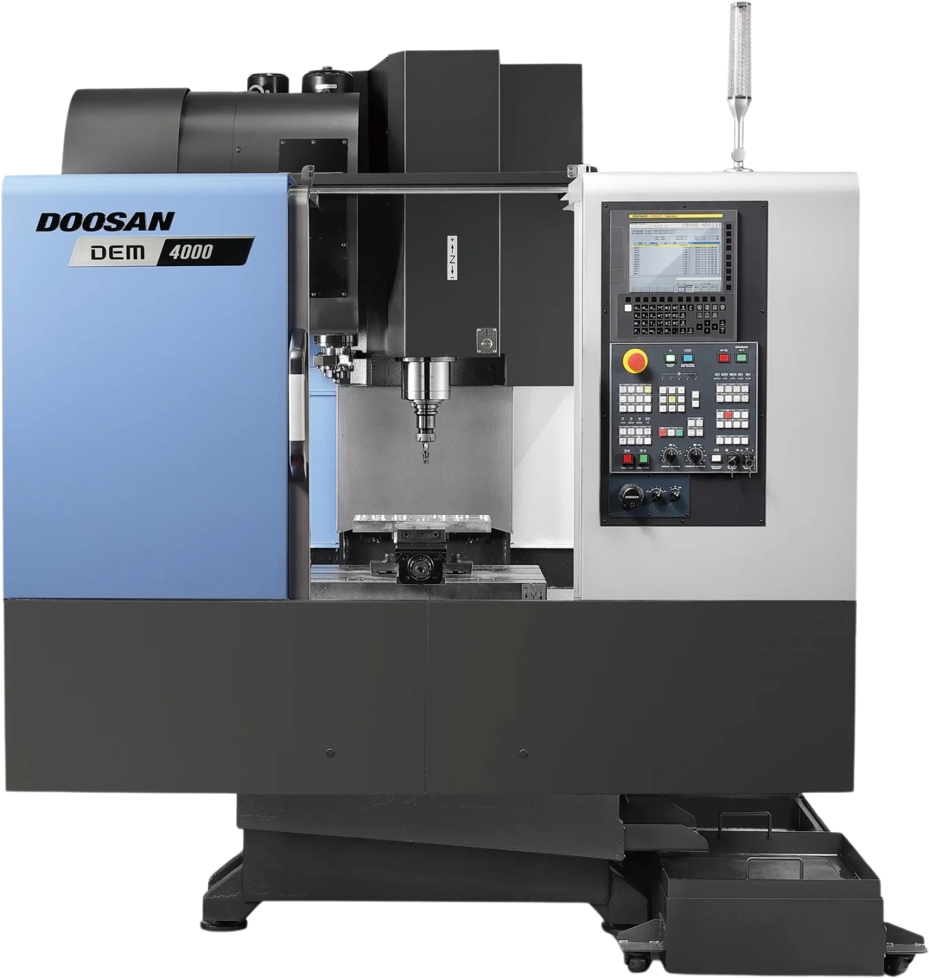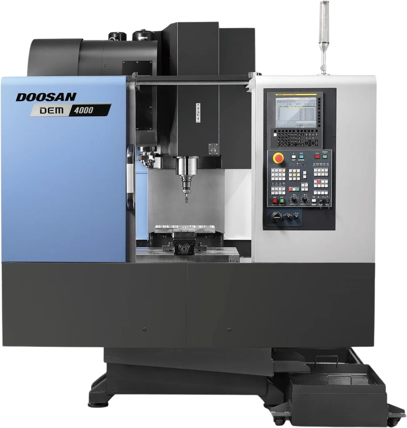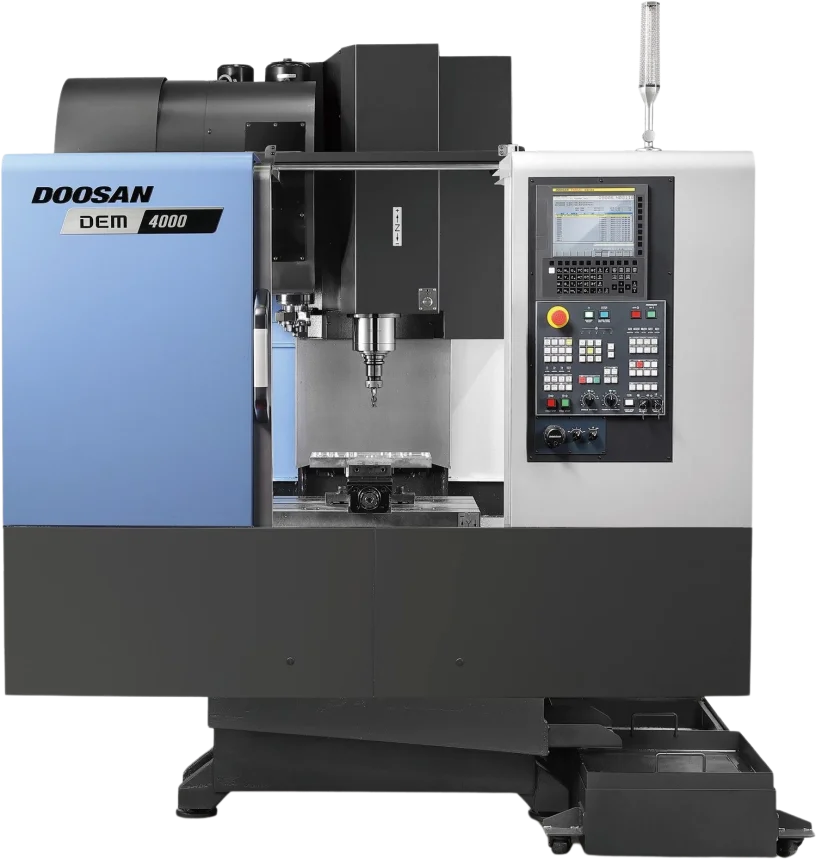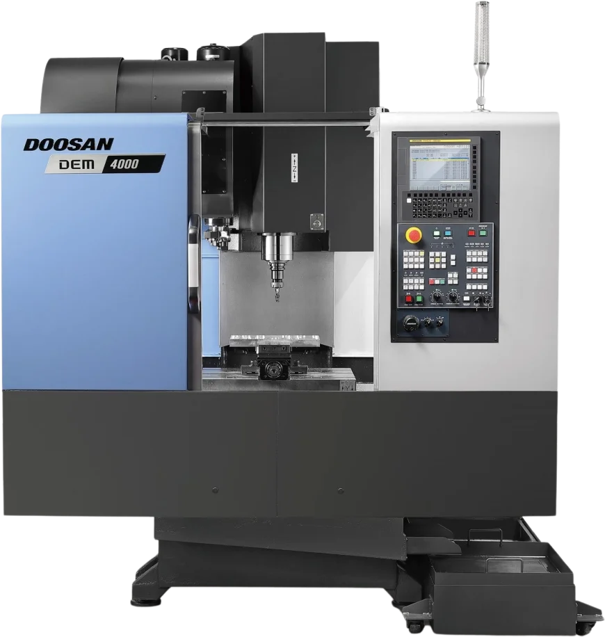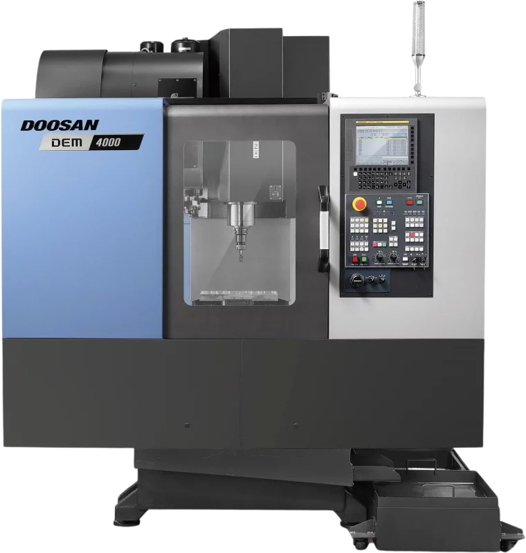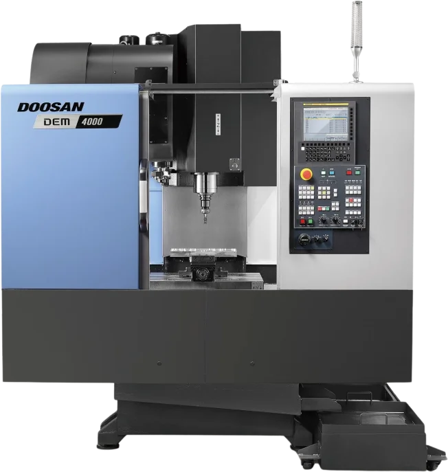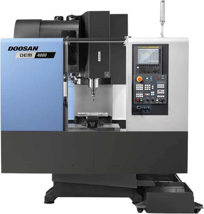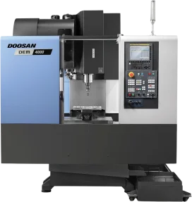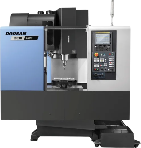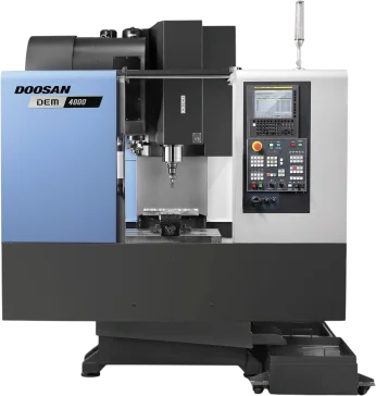 The DEM series includes the Doosan DEM 4000, a compact, high-performance vertical machining center.