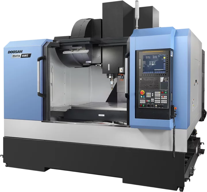 Doosan’s Mynx-series of vertical machining centers is designed for heavy duty machining applications, and for machining tough and hard-to-machine materials.
