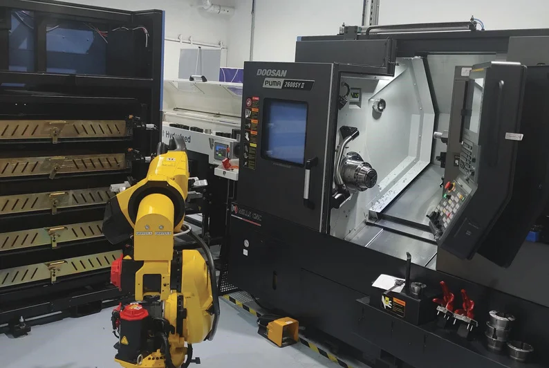 The new, large-capacity SYNERGi Premier system was installed at IMR’s 35,000 sq. ft. Technology Centre facility in Mullinger, Country Westmeath in November 2021, and has been integrated with a Doosan Puma 2600 II multi-tasking lathe, acquired by IMR from Mills in August 2020, to create a flexible automated manufacturing cell.