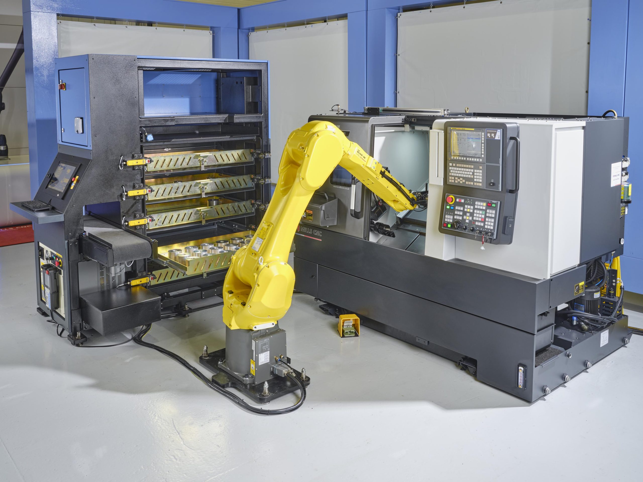 The cells, which can be supplied with requisite caging and fencing and laser floor scanner technology for increased safety, can be further customised through the incorporation of a robot rails (that enable the robot to service more than one machine), a part inspection and ejection conveyor and a part turnover station. The cells can also be configured to allow front loading and side loading.