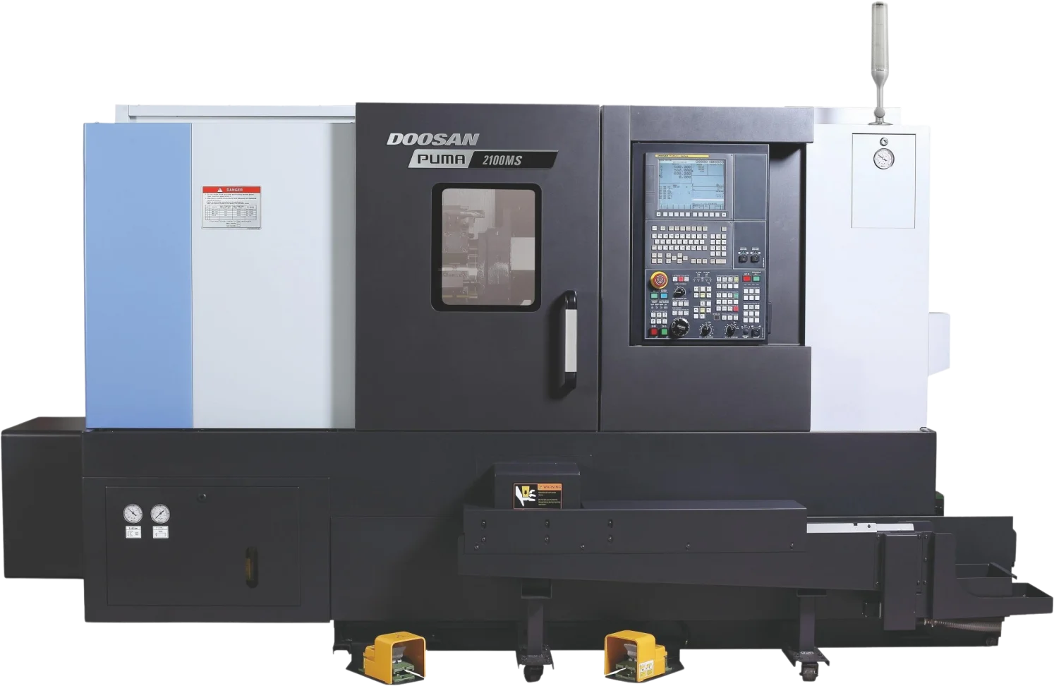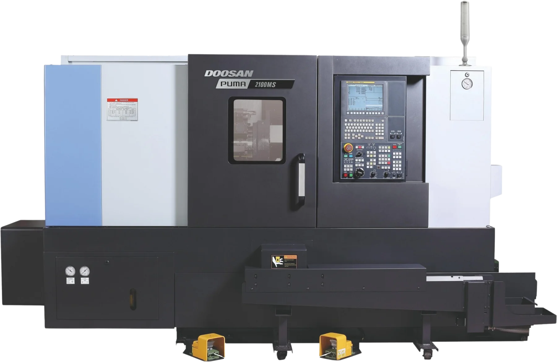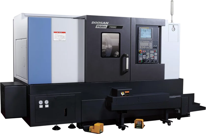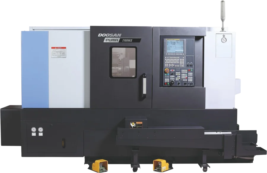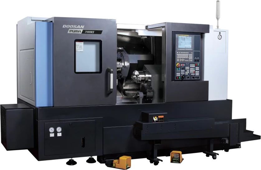 The Puma 2100MS is compatible with Fanuc and Siemens.