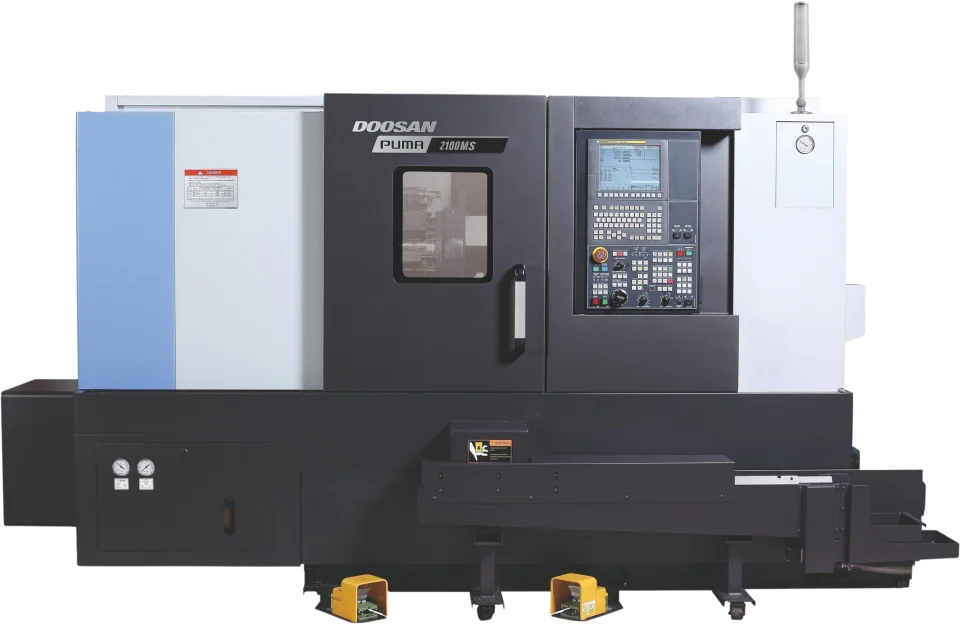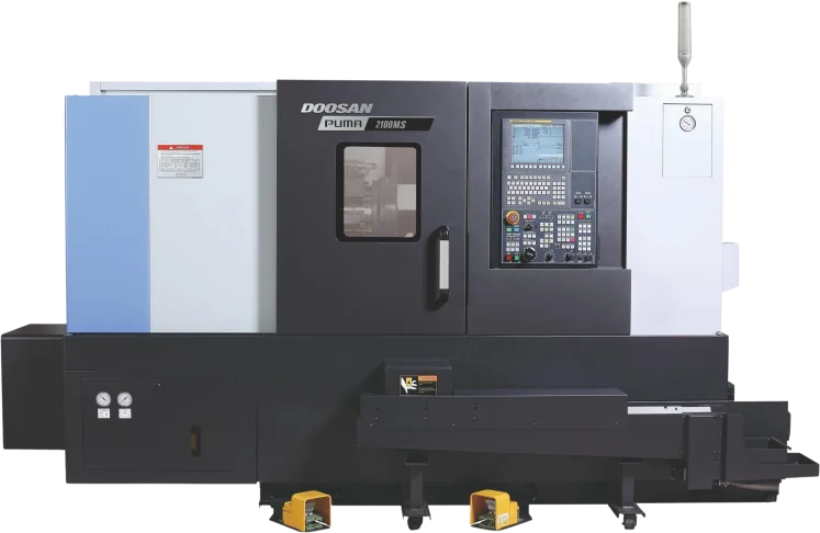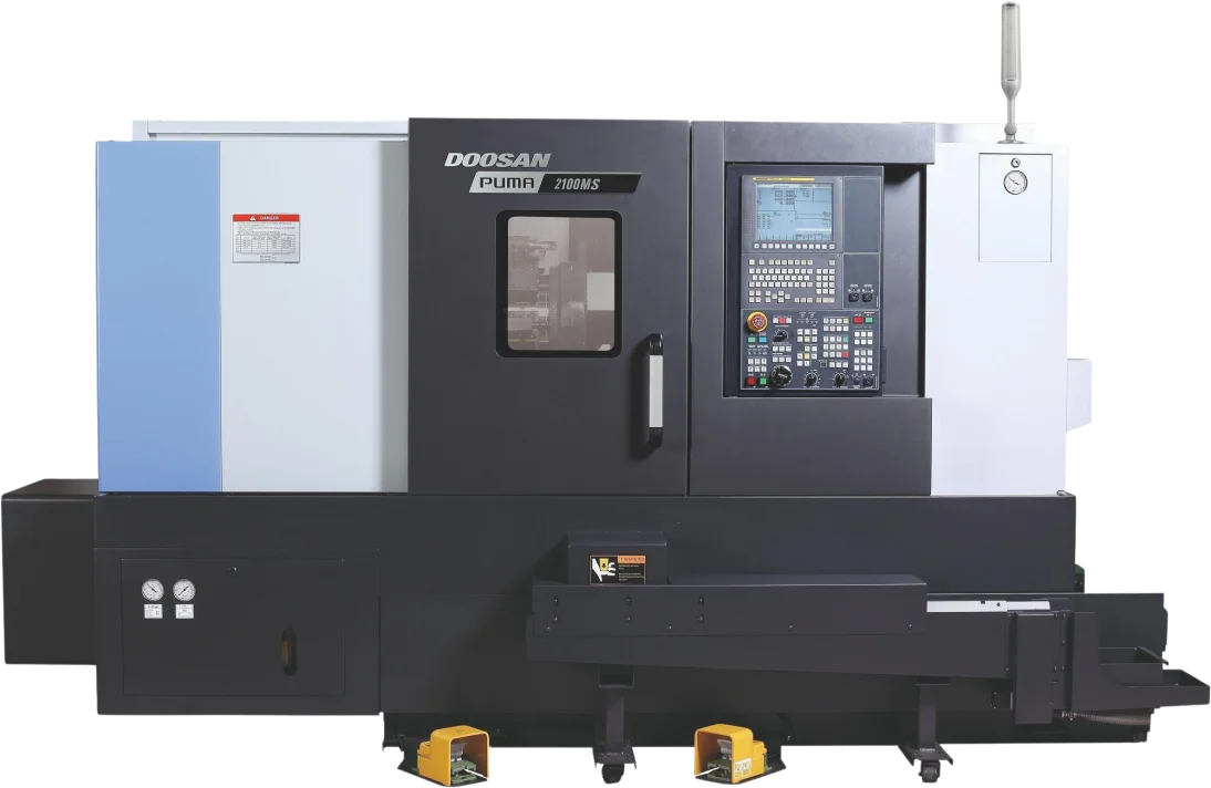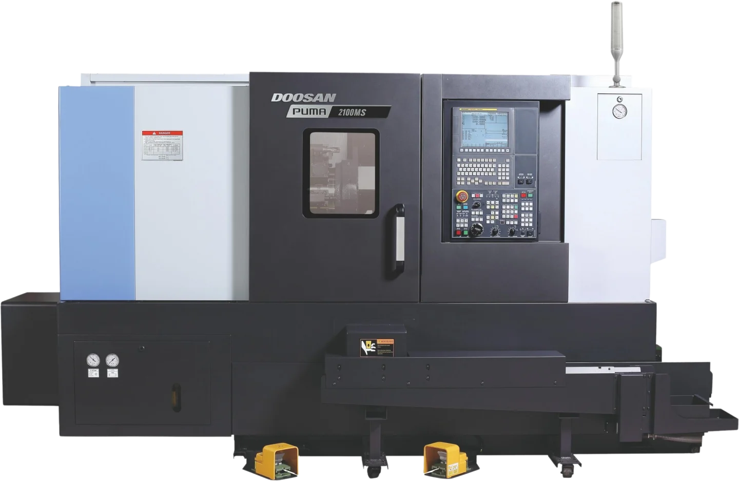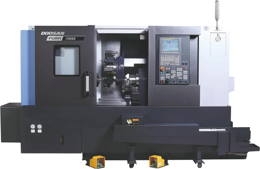 The Puma 2100MS is compatible with Fanuc and Siemens.