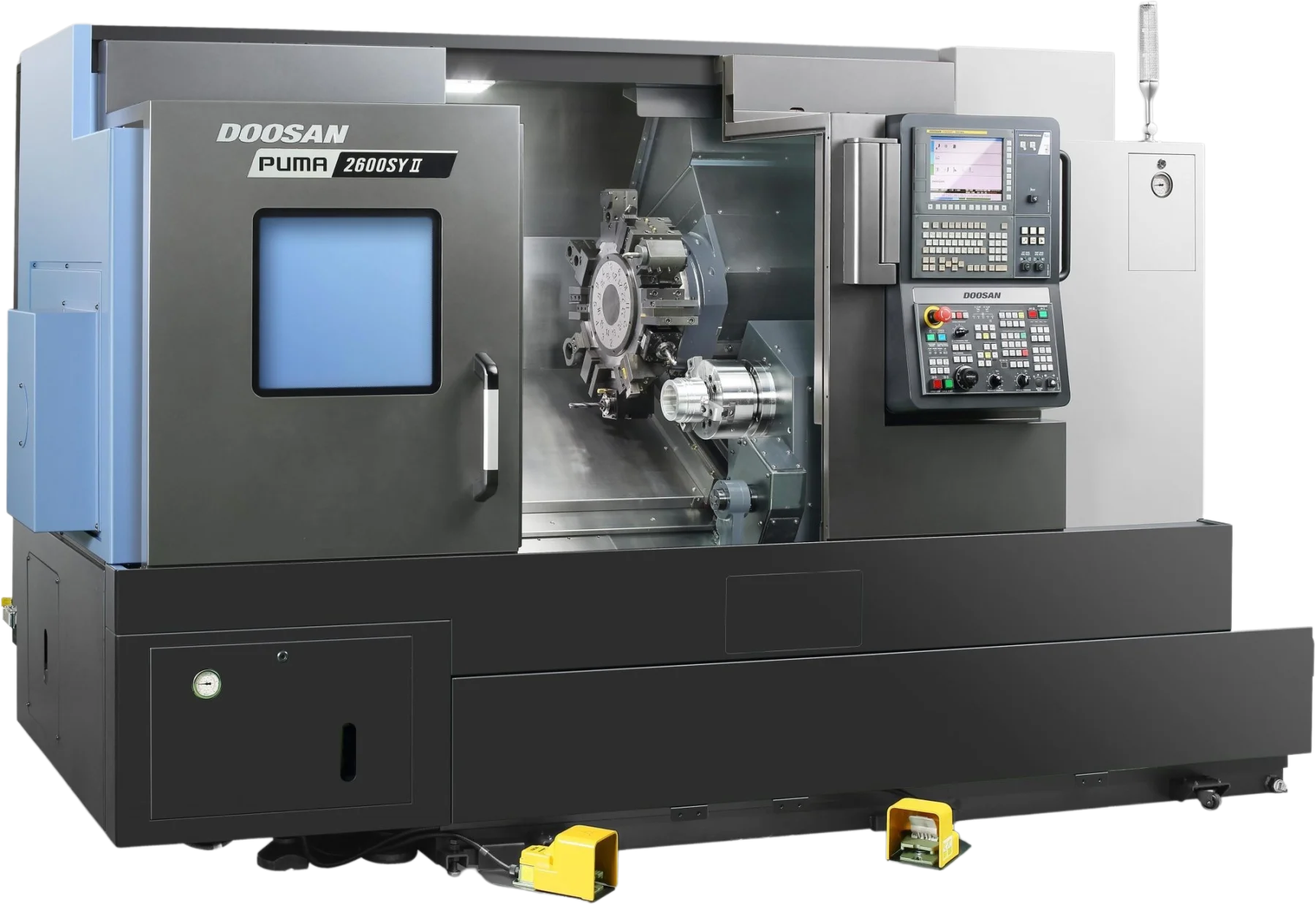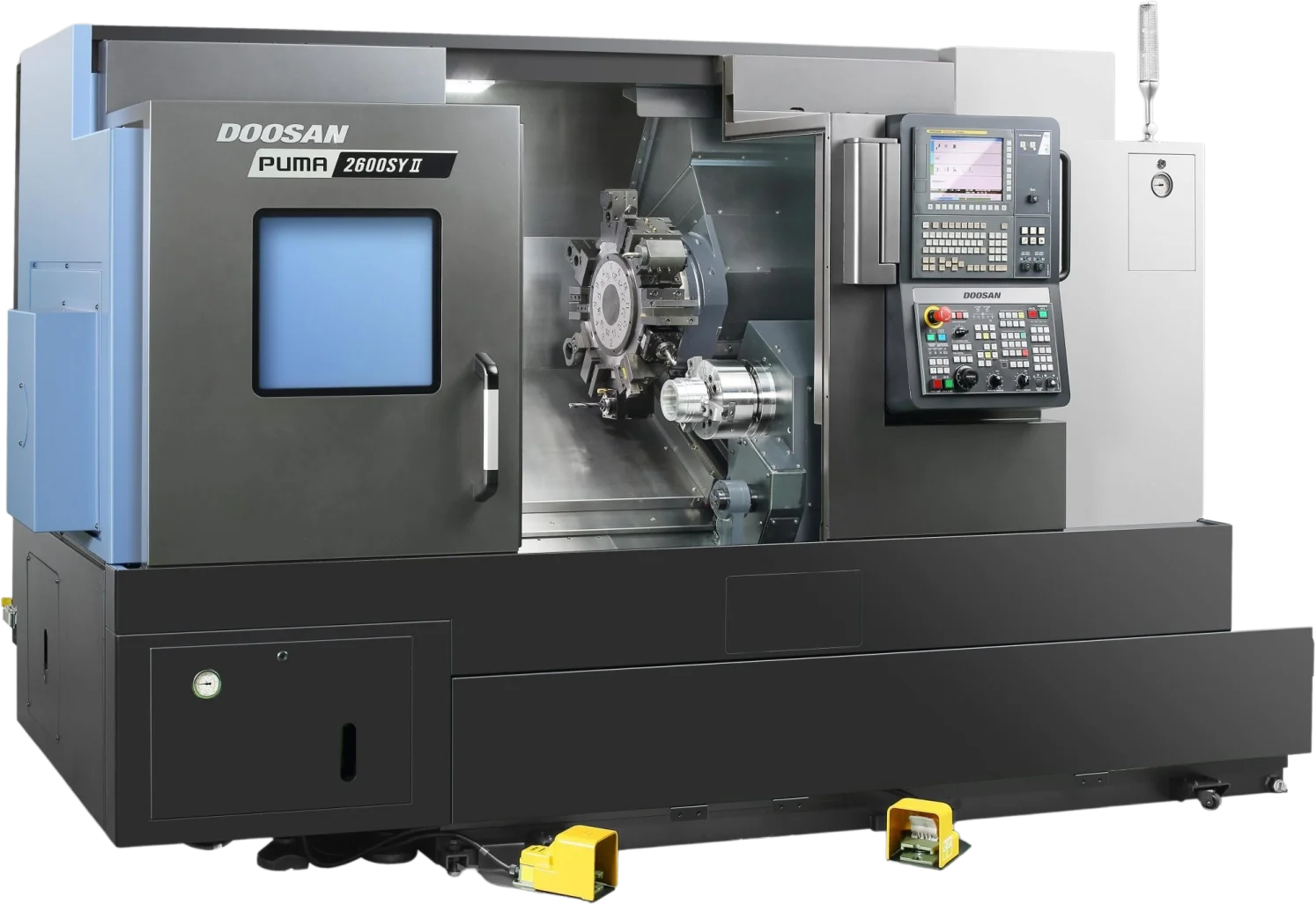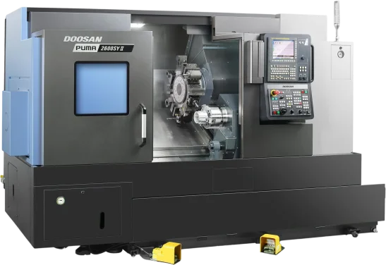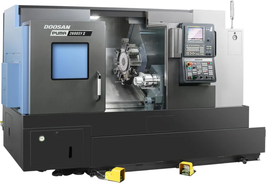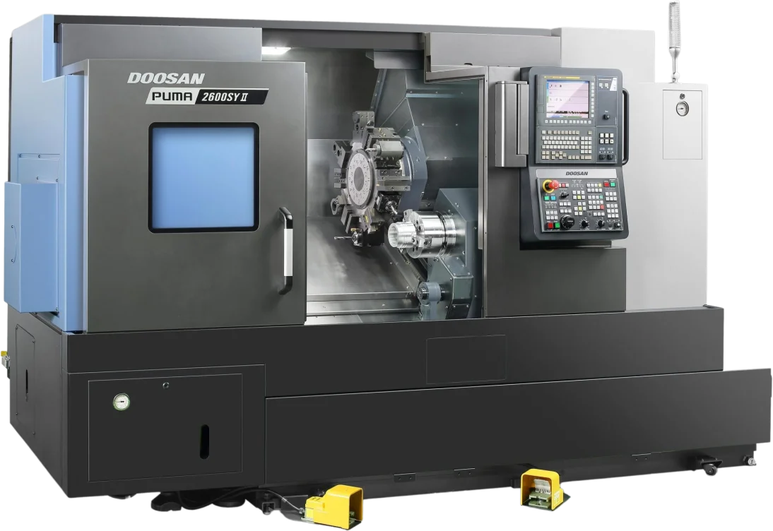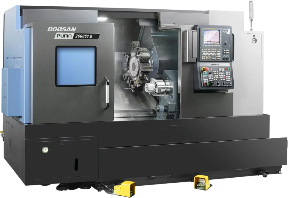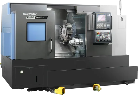 The Puma 2600Y II is compatible with Fanuc and Siemens.
