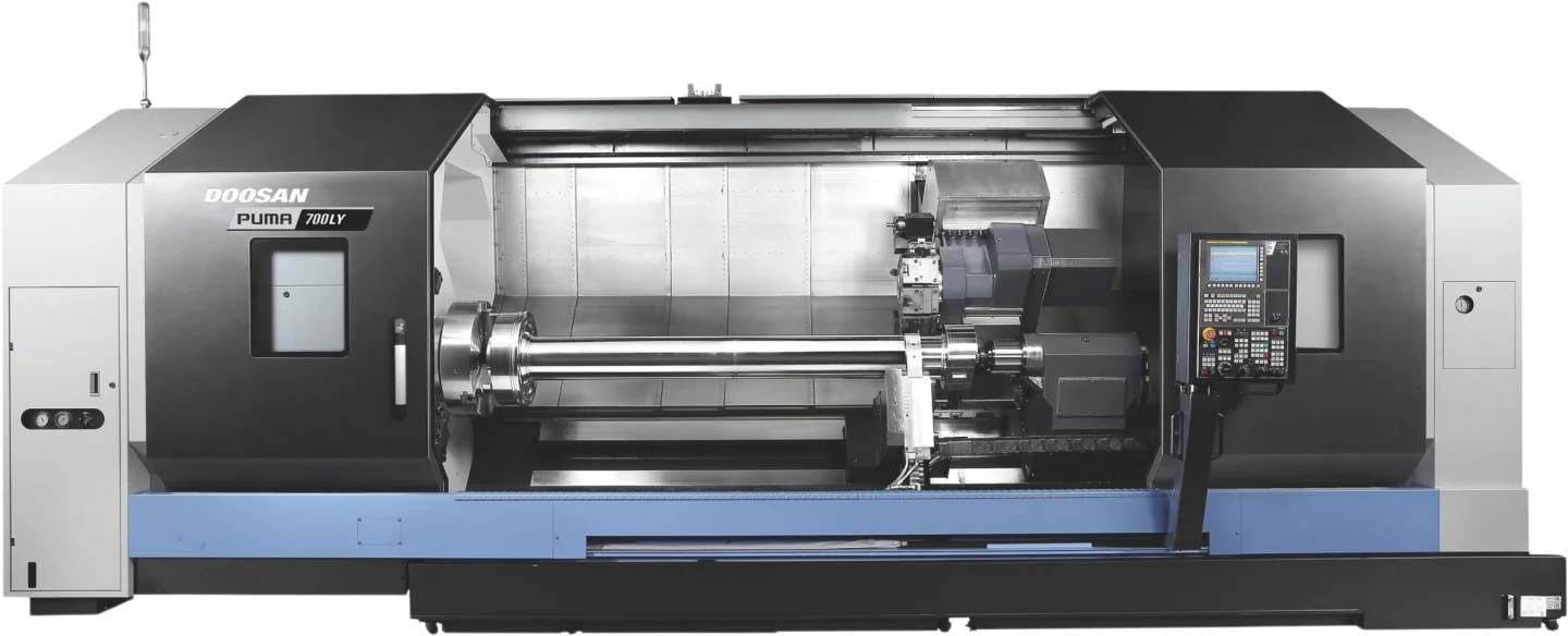 The Puma 700LY II is compatible with Fanuc and Siemens.