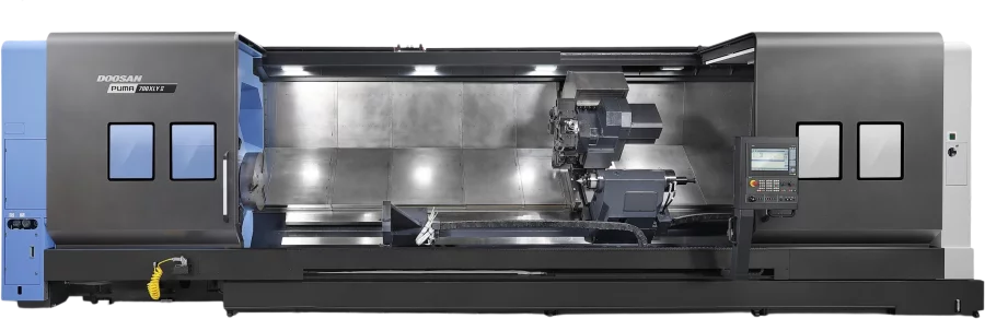 The Puma 700XLY II is compatible with Fanuc and Siemens.