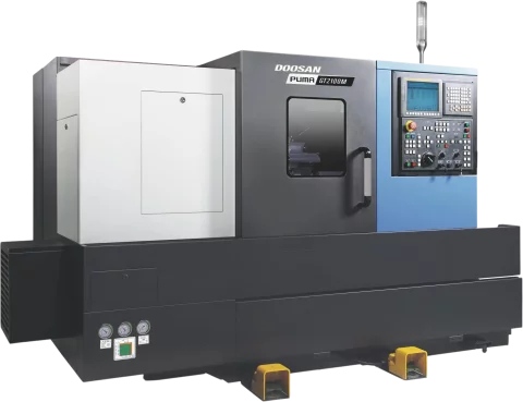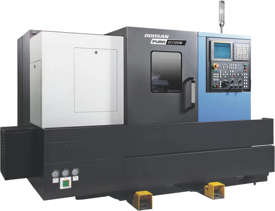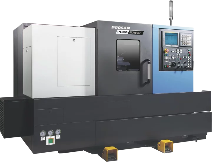 The DN Solutions Puma DNT2100M is compatible with Fanuc and Siemens.