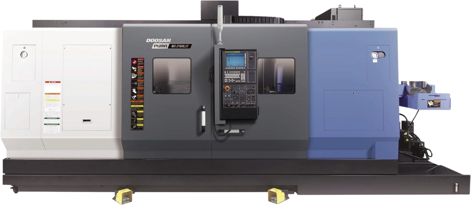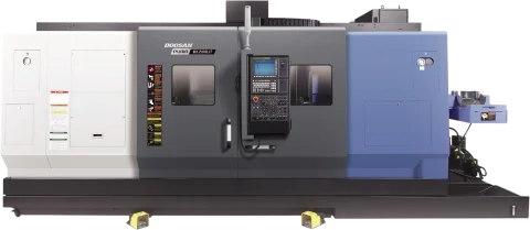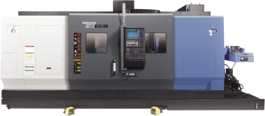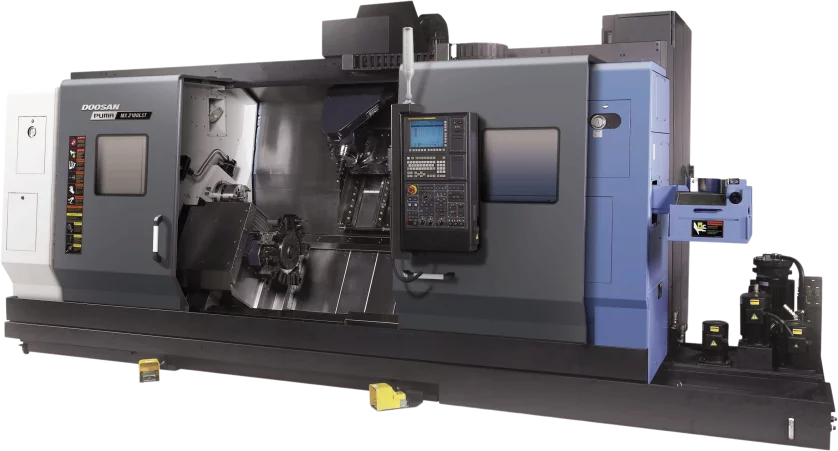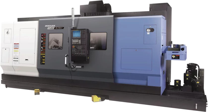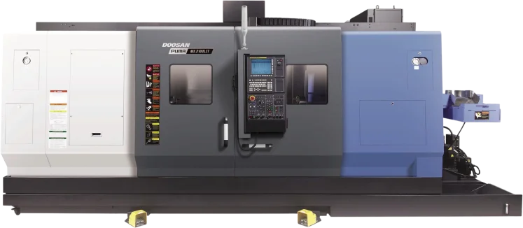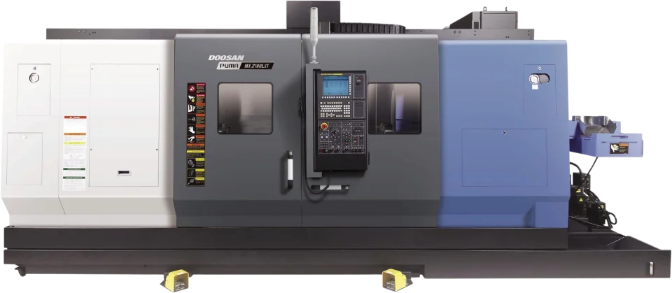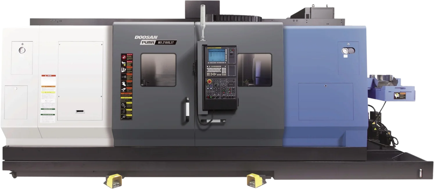 The Puma MX2100LST is compatible with Fanuc and Siemens.