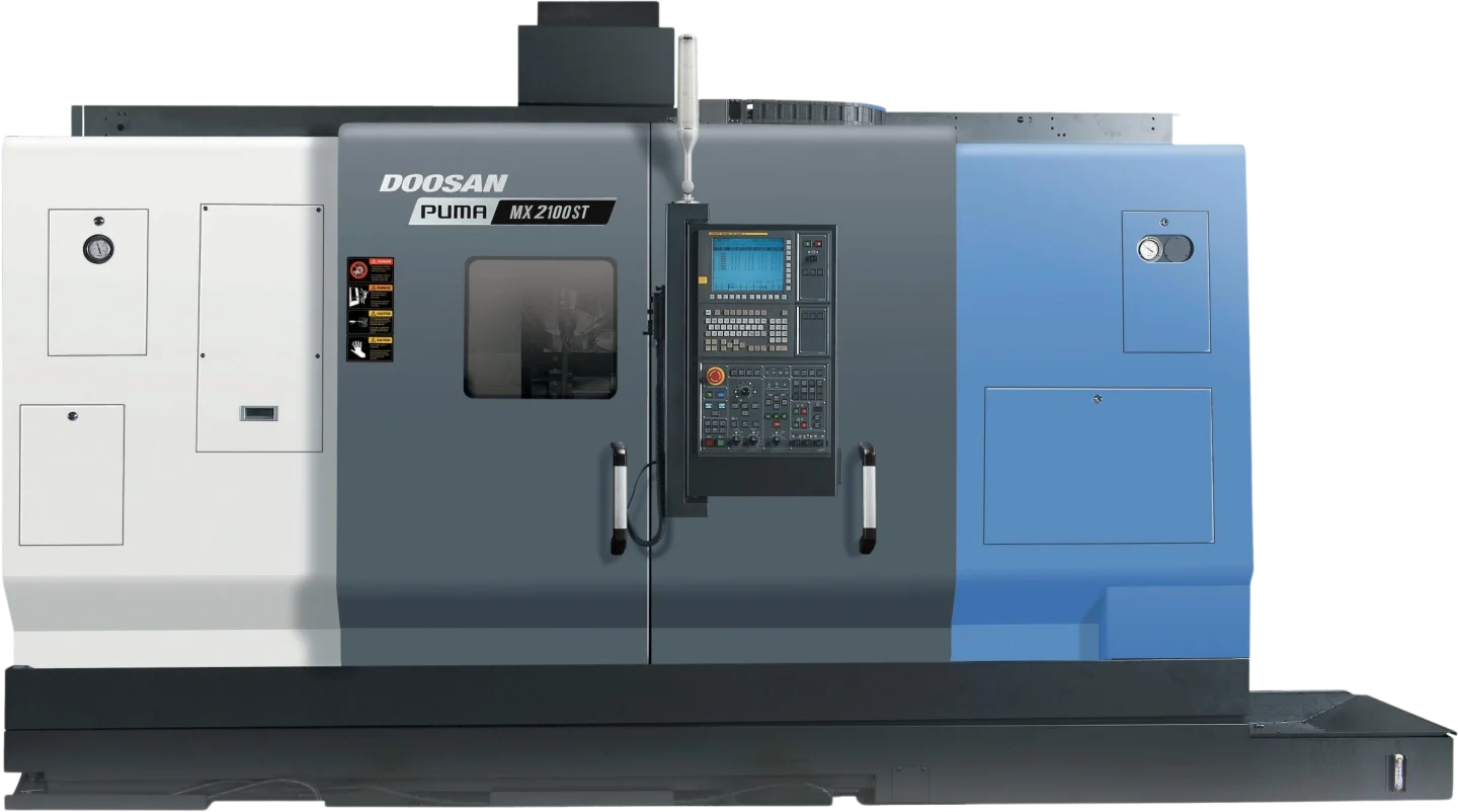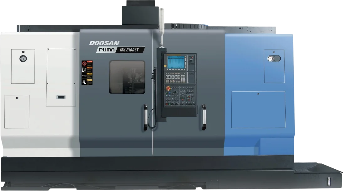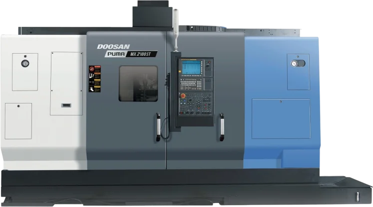 The Puma MX2100ST is compatible with Fanuc and Siemens.