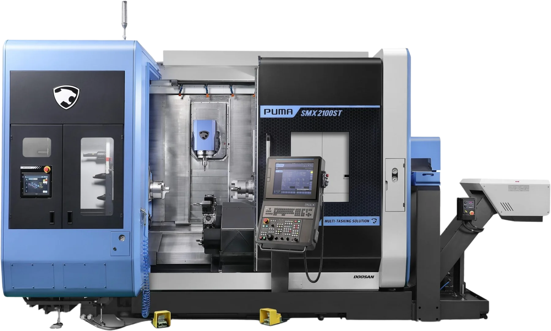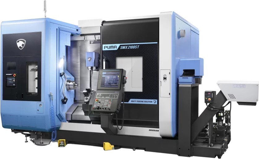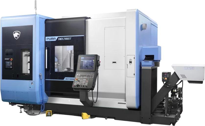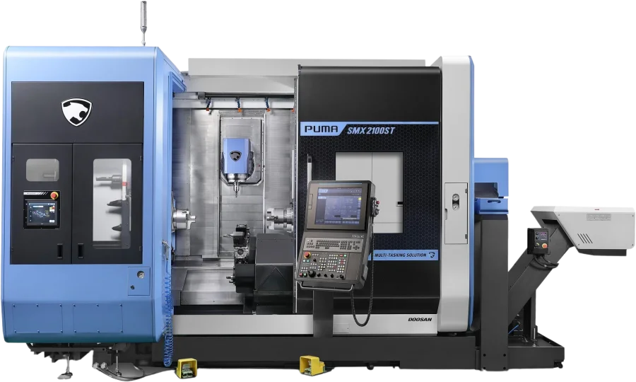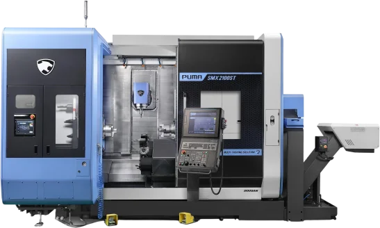 The Puma SMX2100B is compatible with Fanuc and Siemens.