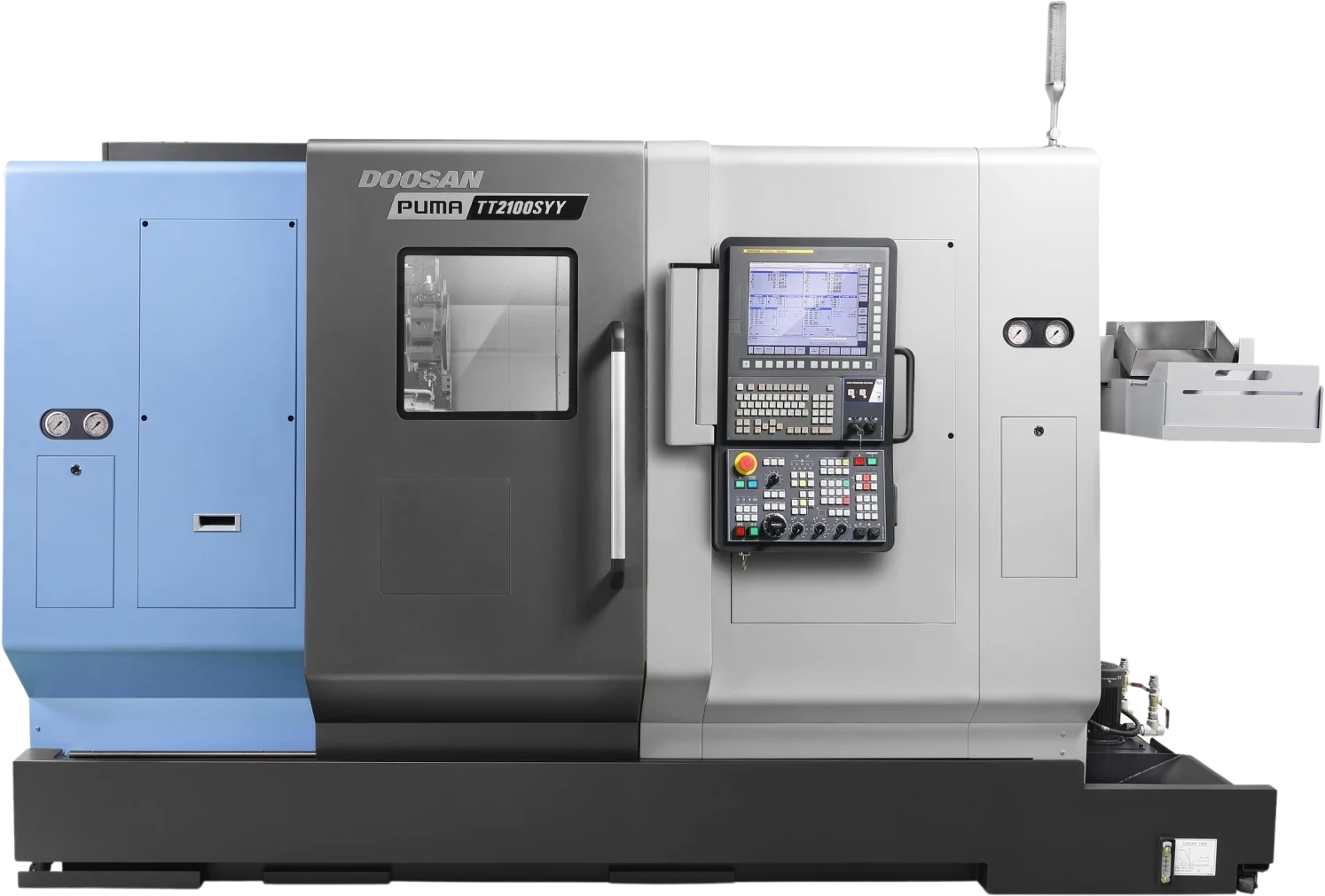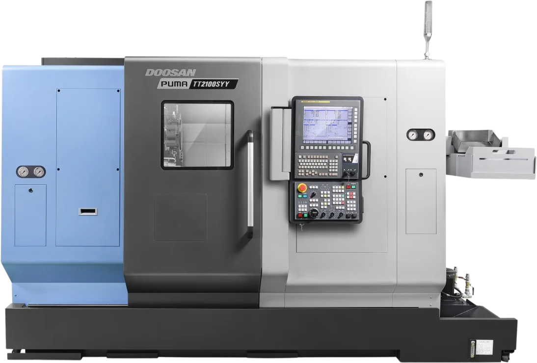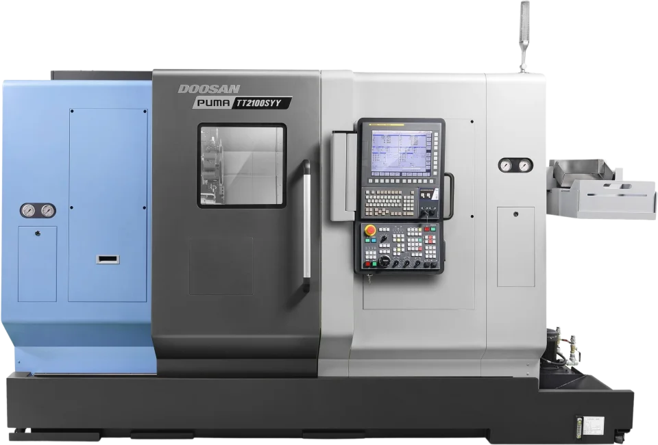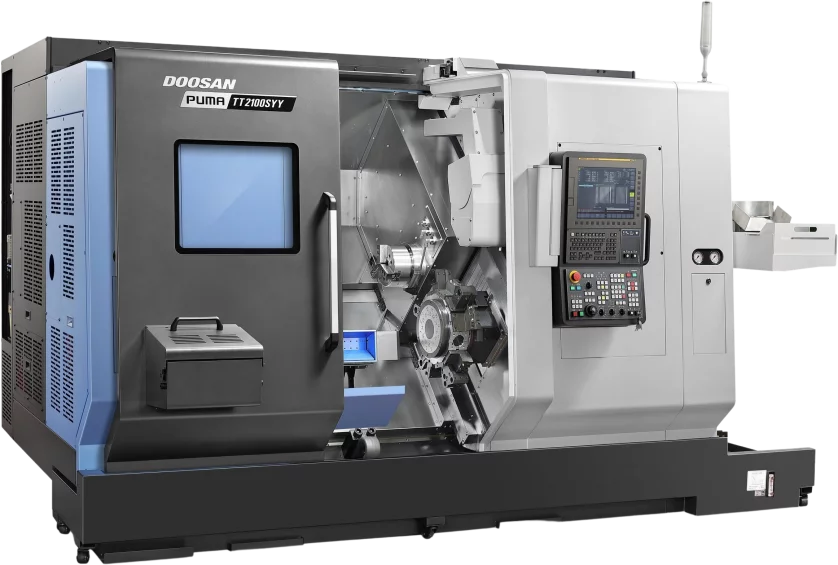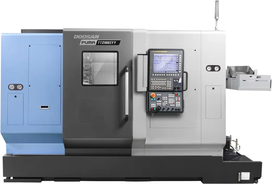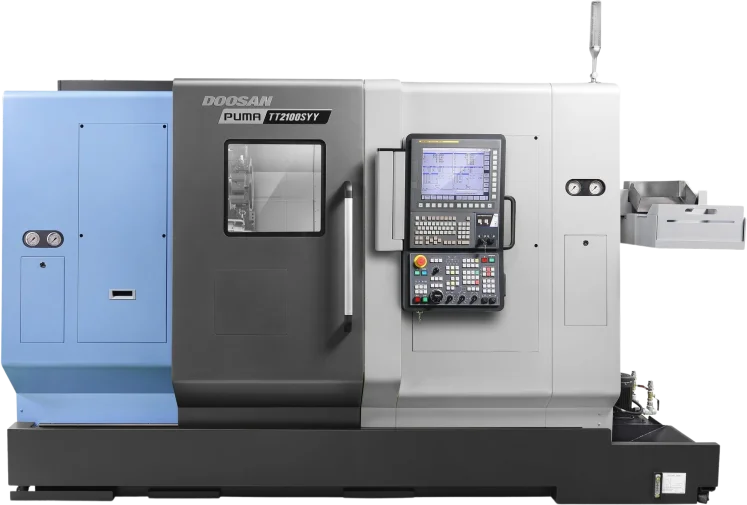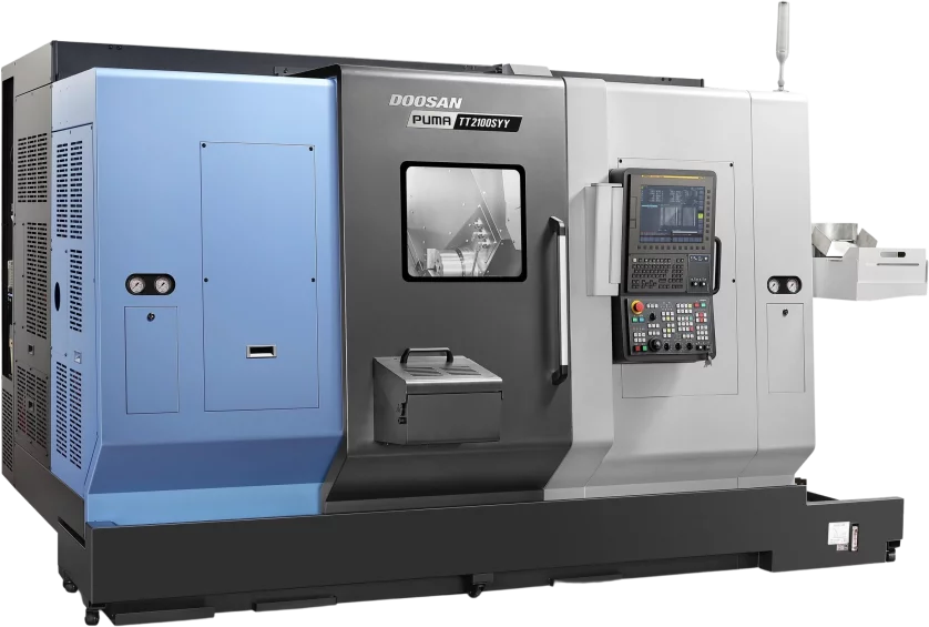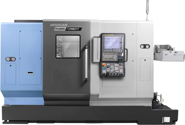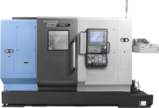 The Puma TT2100SYYB is compatible with Fanuc and Siemens.