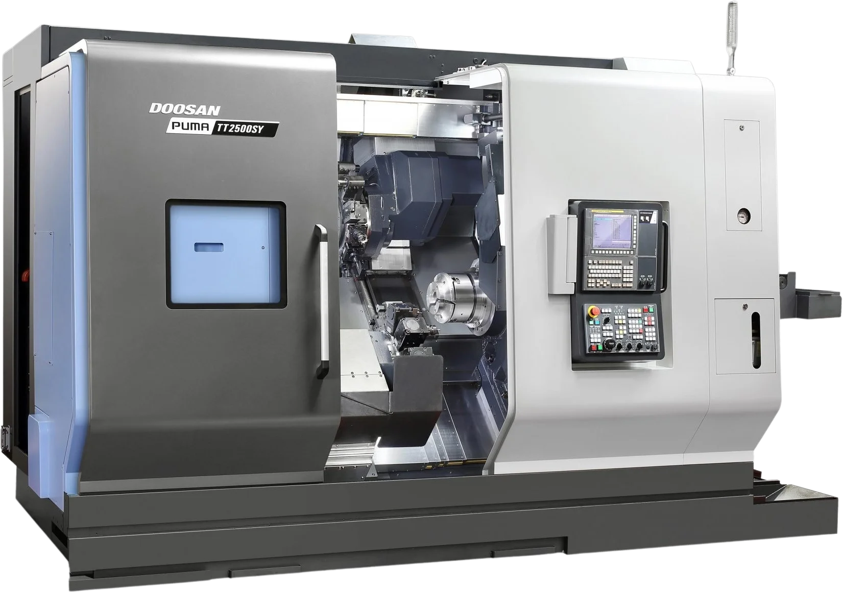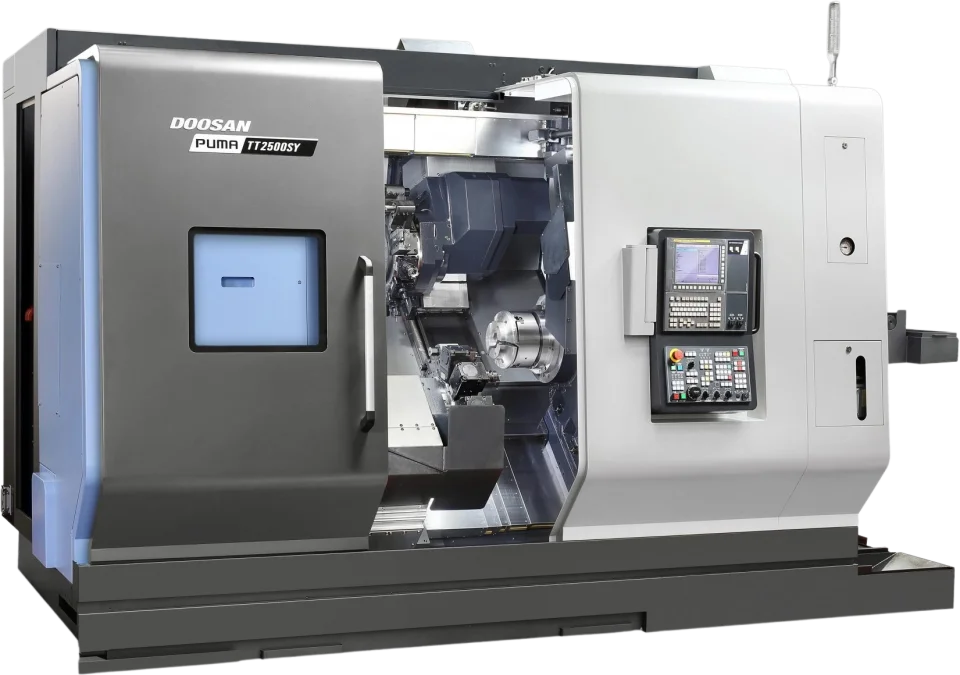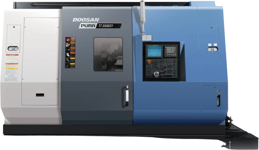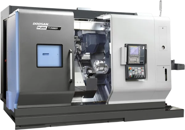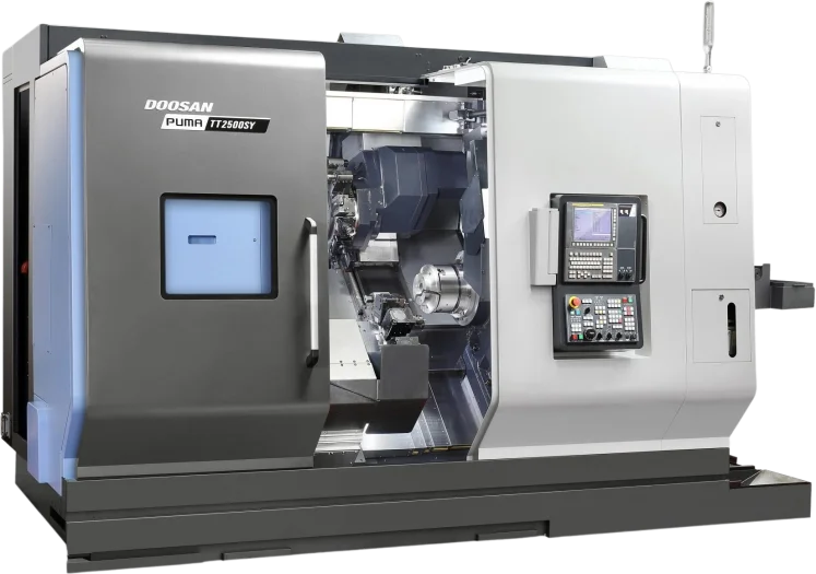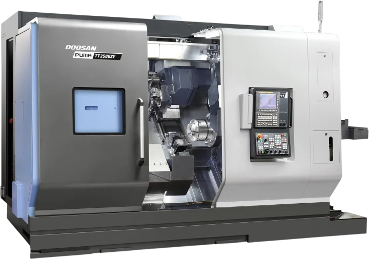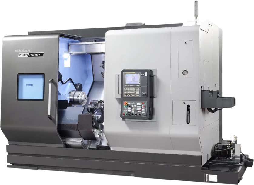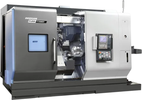 The Puma TT2500SY is compatible with Fanuc and Siemens.