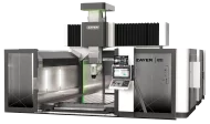 Gantry-type milling machine with a moving bridge, fixed table and cross beam.