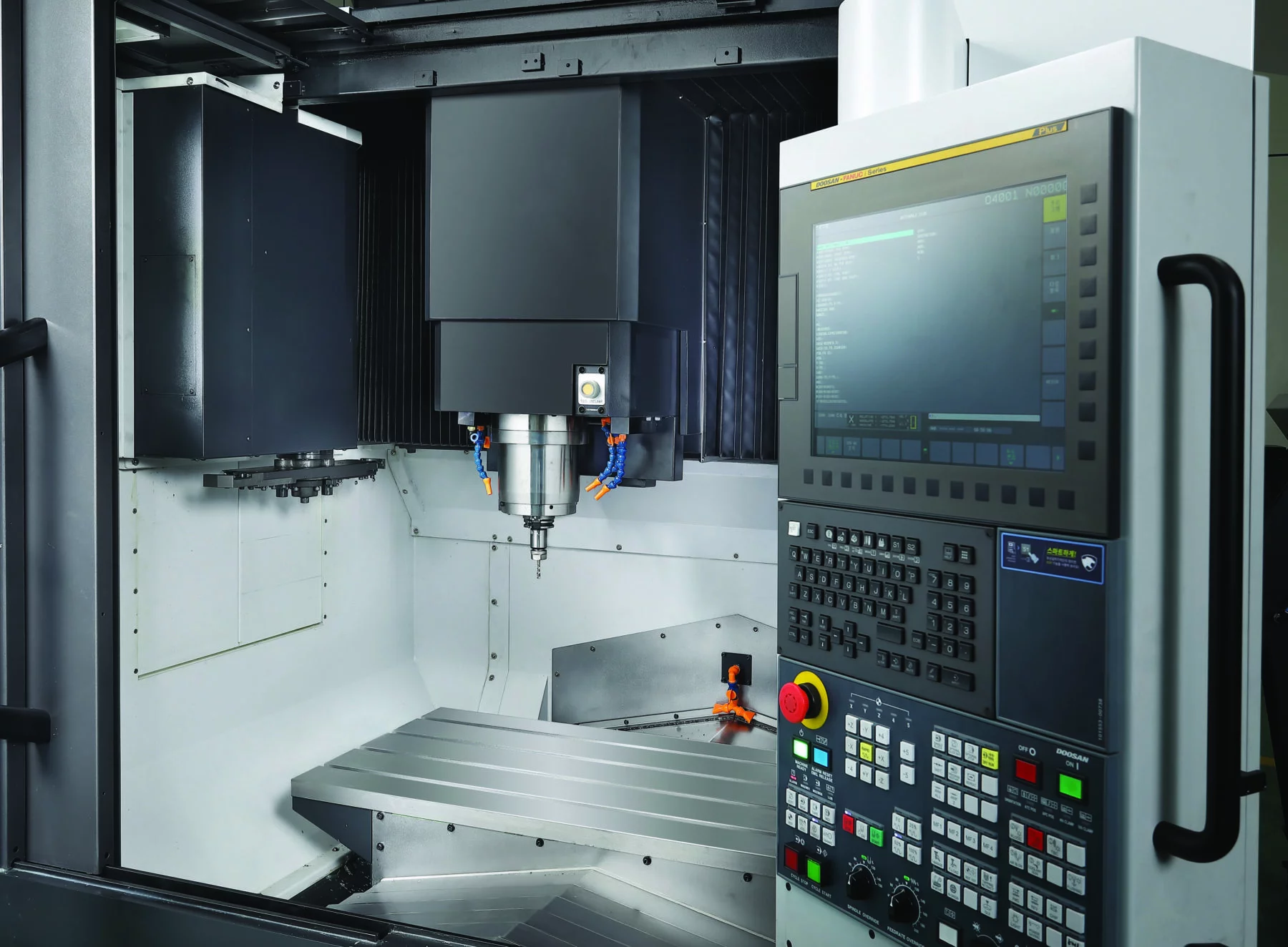 The machine is equipped with the advanced Doosan Fanuc i Plus control with a 15” touch screen and an intuitive and user-friendly iHMI that helps customers reduce time spent on job set ups and make the completion of other tasks i.e., machine monitoring, tool management, production planning etc., faster and more efficient.
